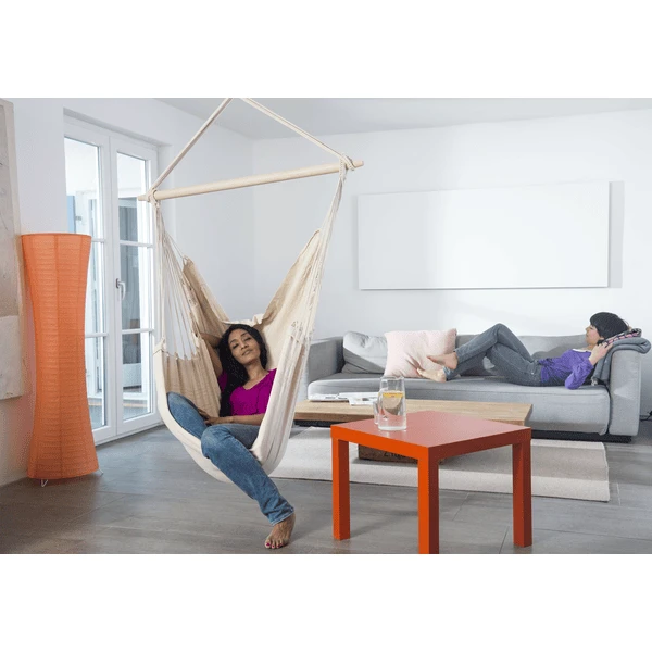 Desde Brasil, el país donde saben hacer la siesta, llega esta hamaca para soñar a pierna suelta. Con una longitud de 1,60 m y un ancho de 1,30 m, la hamaca Brasil cuenta con un formato King Size y es casi tan grande como una hamaca brasileña clásica. Los ribetes de cuatro costuras, así como el tejido extragrueso de 400 g/m² garantiza la máxima resistencia al peso.