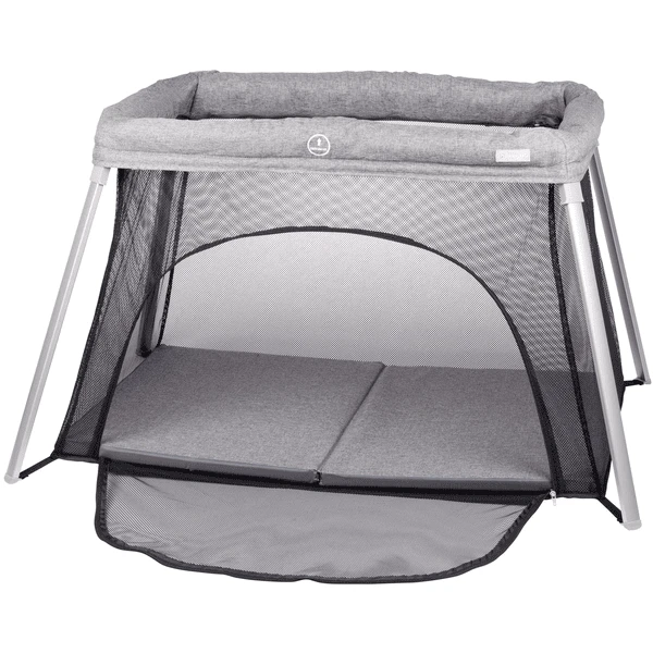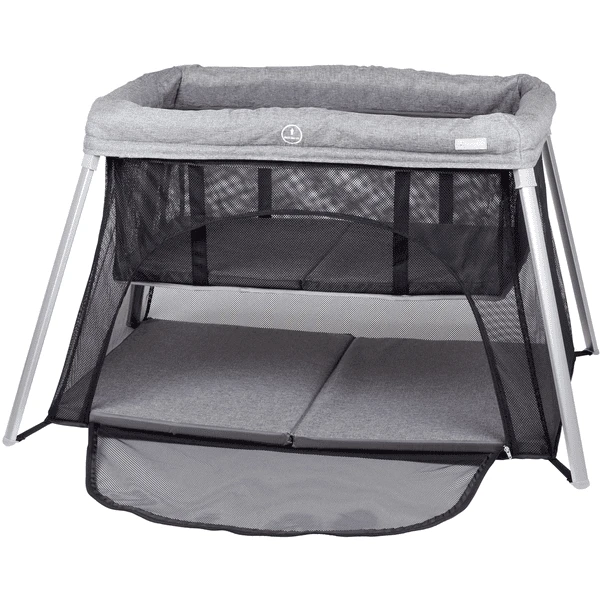 Ideal para casa y para viajar. La cuna de viaje se puede desplegar y plegar con unos pocos clics y se puede transportar fácilmente en el estuche compacto que se incluye. Además, la cuna está homologada como equipaje de mano en aviones. También se incluyen los colchones para ambos pisos.