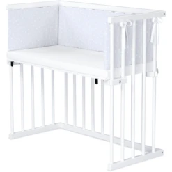 Dreamgood Cuna Colecho Haya Lacado Blanco | Colchón Prime Air | Nido, Gris Claro Puntos Blanco