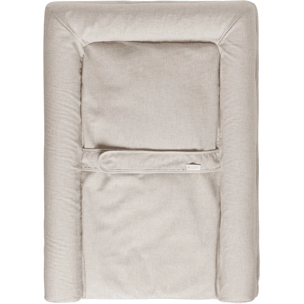 El cambiador gris con sus bordes elevados ofrece seguridad en el cambio de pañales y mejora la comodidad de acostar al bebé mediante una combinación de espuma y microesferas. El cambiador tiene una funda con efecto enrollable y una correa para asegurar al bebé.