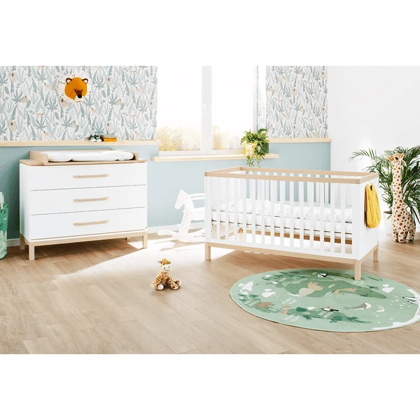 La serie ‘ Light ‘ está disponible como habitación infantil y como conjunto económico. La habitación de los niños consta de una cuna, un amplio cambiador y un armario de 3 puertas. El set económico se compone de una cuna y un amplio cambiador.