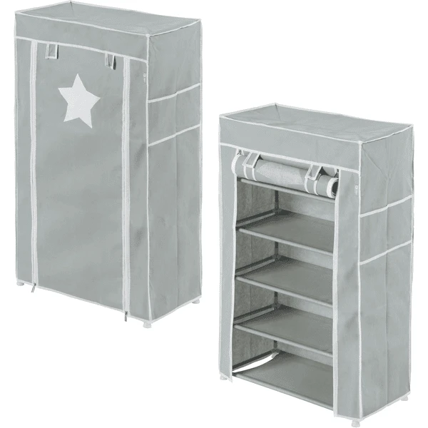 Si el armario textil de la habitación de los niños ya ha tenido su día, puede utilizarse como almacén y armario para zapatos en el pasillo o como estante sin la cubierta de tela. El robusto tejido del armario, que ha sido probado para detectar sustancias nocivas, puede limpiarse y es fácil de limpiar. El armario textil se ha desarrollado en Alemania y es fácil de montar gracias a su sistema de enchufe con Metal l varillas y conexiones de plástico.