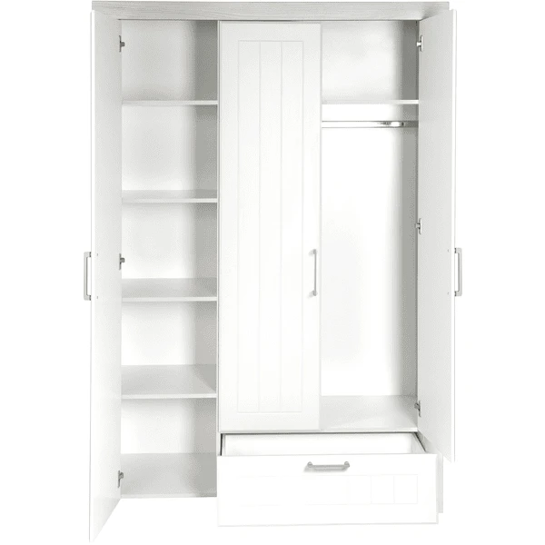 guardar ropa, libros y juguetes. El armario con bisagras tiene 3 puertas con