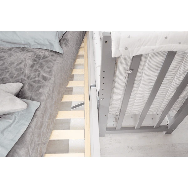 Dreamgood Cuna Colecho Haya Lacado Blanco | Colchón Prime Air | Nido, Gris Claro Puntos Blanco