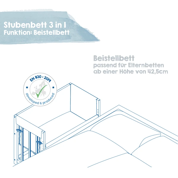la cama de los padres. Con un ajuste de altura de 42,5 cm hasta una altura de