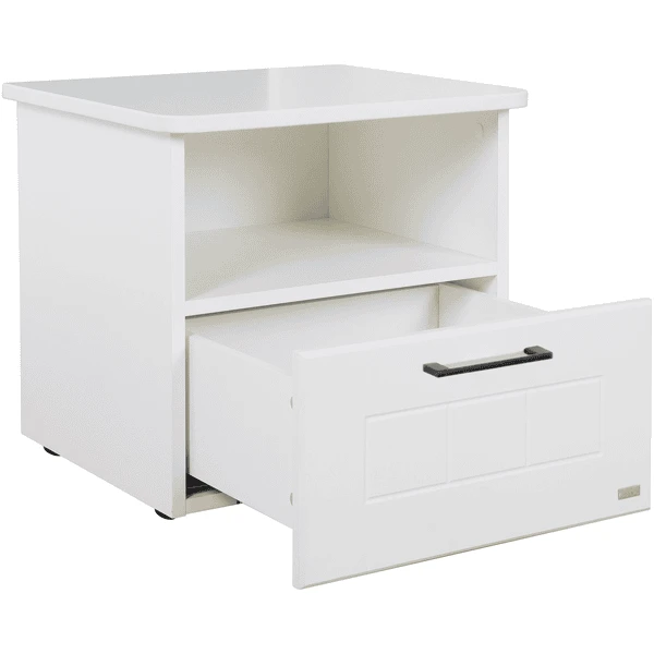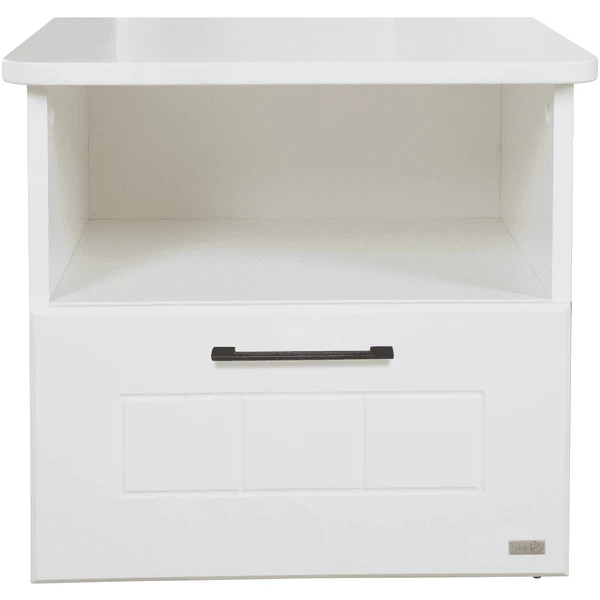 frente del cajón en blanco con bordes decorativos fresados y el tirador negro