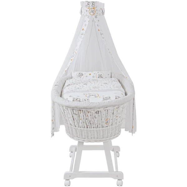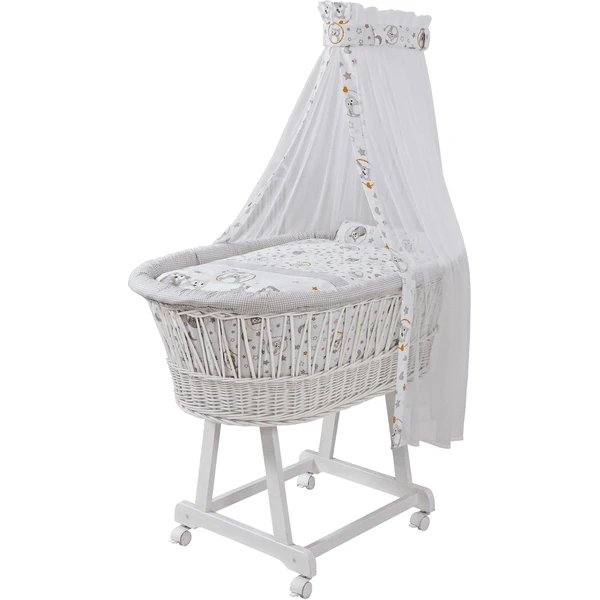 El moisés está equipado con cuatro pequeñas ruedas bloqueables que permiten empujar la camita de una habitación a otra. De este modo, podrá atender inmediatamente las necesidades de su favorito cuando lo necesite.
